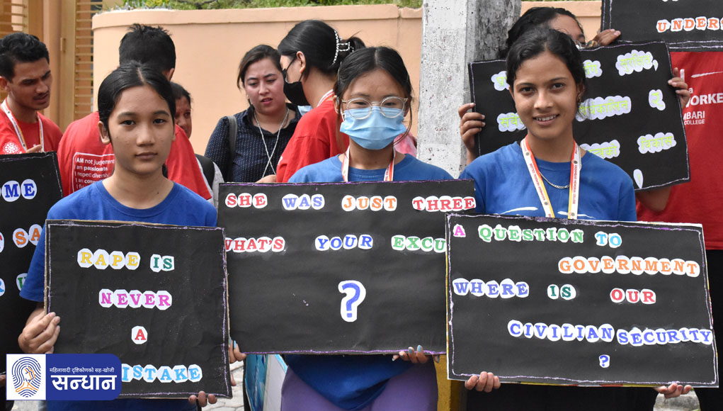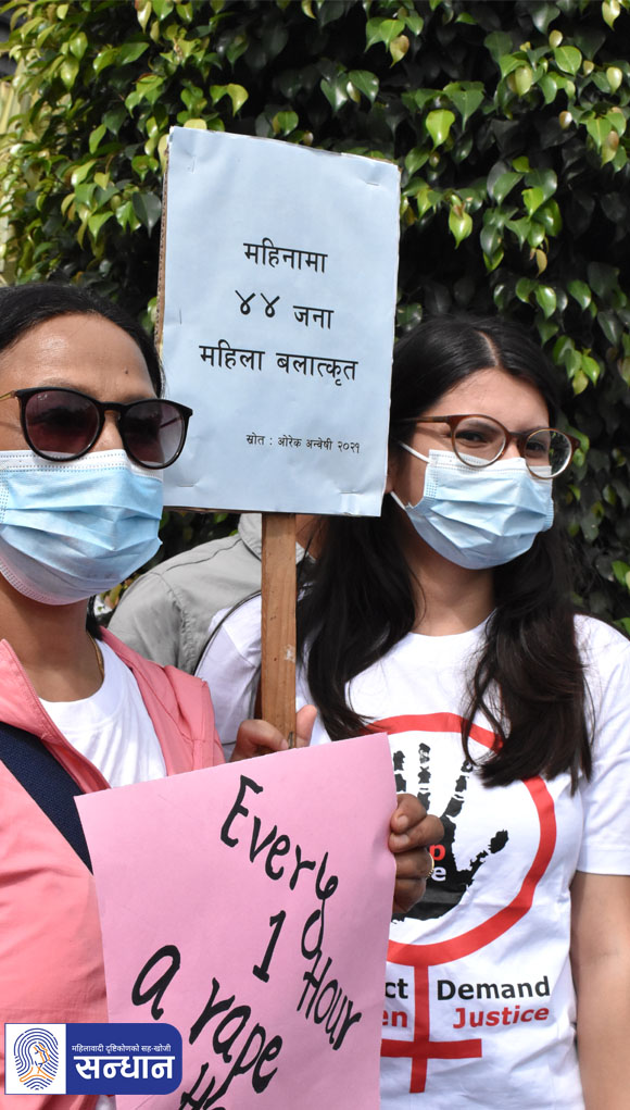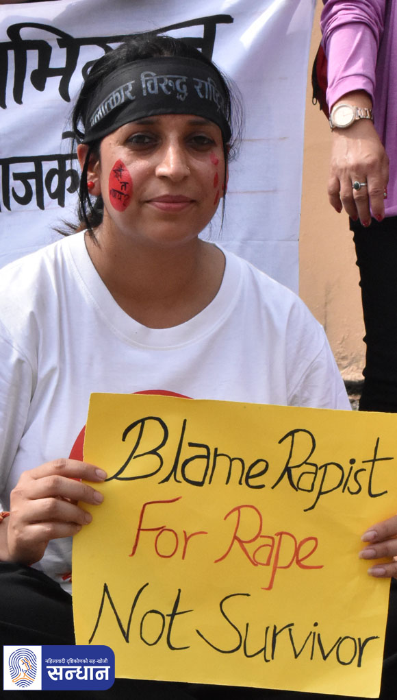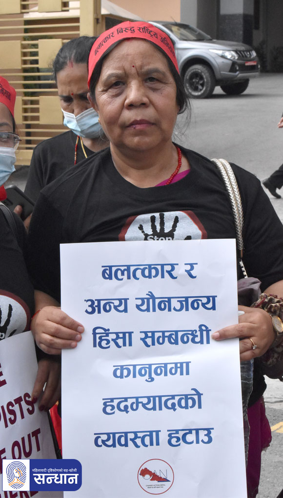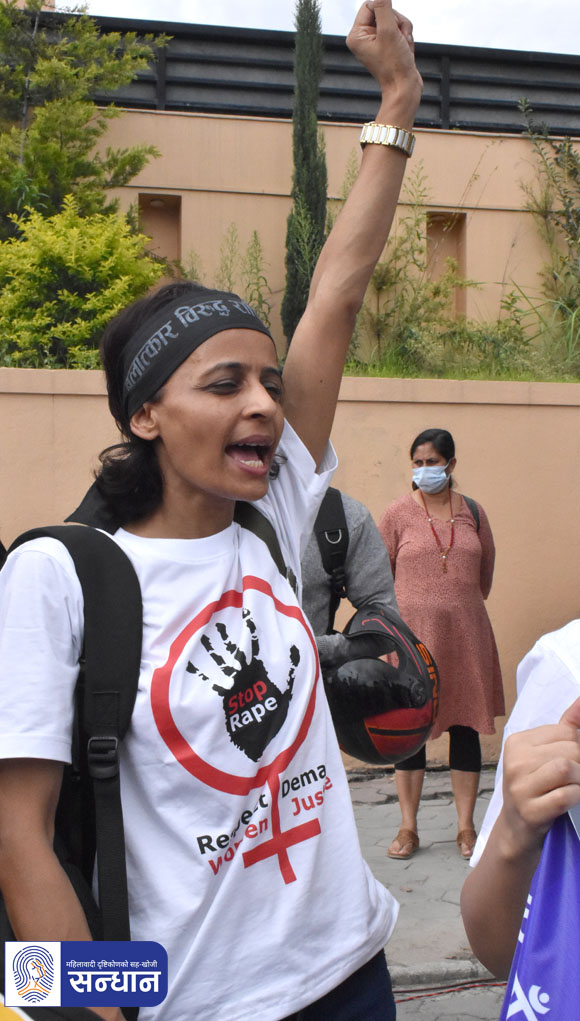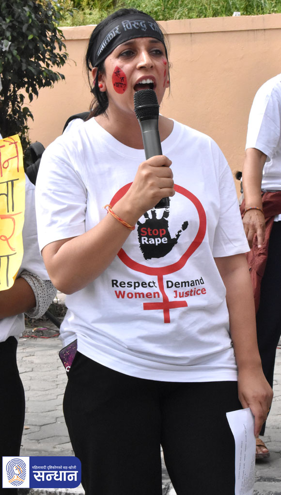 महिला मानवअधिकार रक्षकहरूको राष्ट्रिय सञ्जालकी संयोजक श्याम साहले अभियान सुरु गरिएको घोषणा गर्नुभयो । सो क्रममा उहाँले बलात्कारबाट प्रभावित महिलाहरूको कानुनी र सामाजिक न्याय सुनिश्चितताको लागि जबर्जस्ती करणीमा हदम्याद हटाउनुपर्ने, हिंसाप्रभावित र निजसँग आश्रितहरूलाई निःशुल्क स्वास्थ्य, मनोसामाजिक उपचार र परामर्श तथा क्षतिपूर्तिको व्यवस्था गर्नुपर्ने माग गर्नुभयो ।