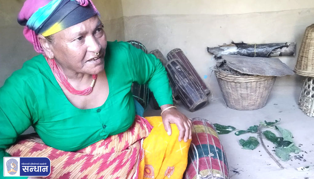 श्रीमान् बित्नुभएको १० वर्ष हुन लाग्यो । छोराले एउटा आँखा देख्दैन । तर, उसले नै मादल मोड्छ । म पनि उसँगै सकेको काम गर्छु । काम नगरी बस्दिनँ । बस्न मन पनि लाग्दैन । छोरा एक्लैले गरेर भ्याउँदैन पनि । म राम्रोसँग हिँड्न सक्दिनँ । छोराले नै मादल बनाएर विष्टलाई दिन्छ र कहीँबाट १० पाथी त कहीँबाट पाँच पाथी धान ल्याउँछ । त्यही खान्छौँ । त्यसैबाट जीविका चल्छ । धनौरा, खैरेनी, हिकुलीलगायतका गाउँहरूमा हाम्रा विष्टहरू छन् ।