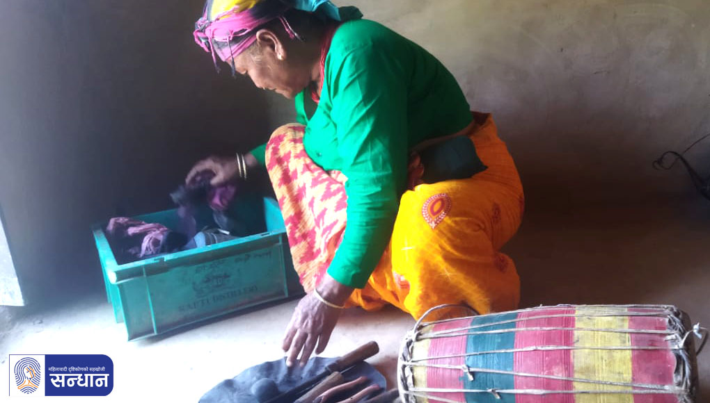 चौध वर्षको उमेरमै मेरो बिहे भयो । श्रीमान्काे घरमा सासूससुरा तथा श्रीमान् मादल बनाउने पुर्ख्यौली पेसा गर्नुहुन्थ्यो । त्यही पेसा गरेर नै जीविकोपार्जन गर्नुहुन्थ्यो । म सासूसँगै विष्टको घरमा मानो लिन जान्थेँ । मानो भनेको मादल बनाइदिएबापत दिइने धान, मकै, गहुँ आदि हो । मैले घरका अन्य कामहरू पनि गर्थें । त्यतिन्जेलसम्म पनि मैले मादल बनाउनेतर्फ ध्यान दिएकी थिइनँ ।