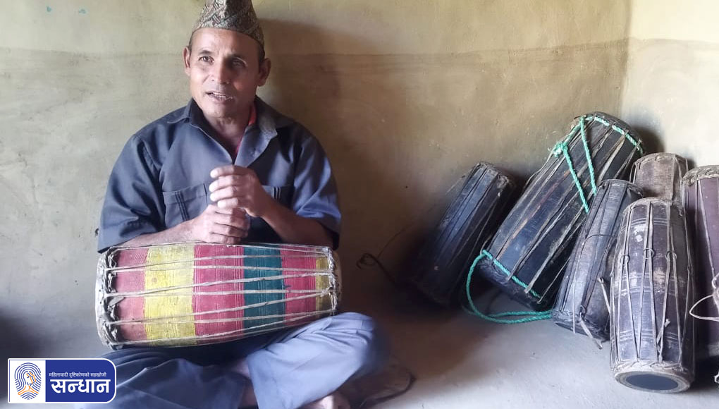 हामीहरू दाङको लटारमा बसेको ४० वर्षभन्दा धेरै भयो । अहिले सात जनाको परिवार छ । विष्टहरूले मादल बनाउन लगाउने र त्यसबापत मानो दिने गर्नुहुन्छ । हामी विष्टको घरबाट मानो ल्याएर खाने गर्छौं । गाउँकै बसाइ भए पनि पानीसमेत किनेर खानुपर्छ । सरकारले खानेपानीको व्यवस्था त गरिदिएको छ तर किन्नुपर्छ । पानी पनि किन्नुपर्ने बेला आयो ! अर्को कुरा, पछिल्लो समयमा मादल कम बिक्न थालेको छ । यसरी कम बिक्नाले अल्लि गाह्रोसाह्रो अवस्था पनि आइपरेको छ । आफ्नो खेतबारी छैन । सबै मादल बनाएर पाउने आम्दानीको भर हो । मादल बेच्यो, खानेकुरा ल्यायो, खायो । पैसा ल्यायो, बालबच्चा पढायो । यस्तै छ । आम्दानी र खर्चको हिसाबकिताब राखेको छैन । पढेलेखेको भए हिसाबकिताब पनि हुन्थ्यो होला, पढेको लेखेको छैन । हिसाब किताब पनि हुँदैन ।