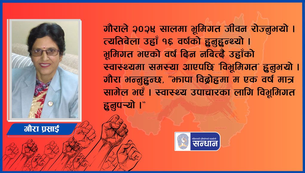 गौरा भन्नुहुन्छ, “मलाई बालबच्चा लिएर भूमिगत हुन खोज्दा पार्टीका शीर्ष नेताहरूले ‘कि पार्टी छोड कि राजनीति छोड’ सम्मको तूच्छ वचन बोले तर मैले दुवै त्याग्न सकिनँ ।”