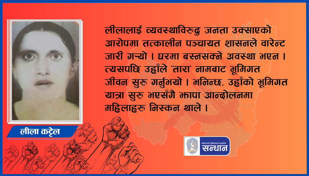त्यसपछि प्रगतिशील विद्यार्थीहरूको एउटा समूह घैलाडुब्बा पुग्यो । विद्यार्थीहरूको समूह देखेर मण्डलेहरू त भागे तर त्यसपछि घटनाले अर्कै रूप लियो । लीलालाई व्यवस्थाविरुद्ध जनता उक्साएको आरोपमा तत्कालीन पञ्चायत शासनले वारेन्ट जारी गर्यो । घरमा बस्नसक्ने अवस्था भएन । त्यसपछि उहाँले ‘तारा’ नामबाट भूमिगत जीवन सुरु गर्नुभयो । भनिन्छ, उहाँको भूमिगत यात्रा सुरु भएसँगै झापा आन्दोलनमा महिला कार्यकर्ता निस्कन थाले ।