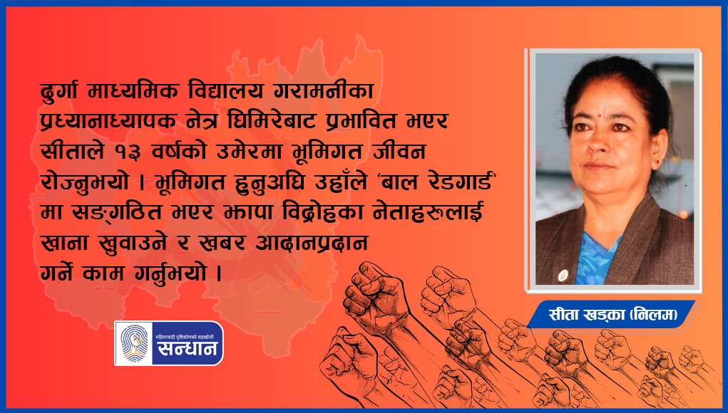 सीताले १३ वर्षको उमेरमा भूमिगत जीवन रोज्नुभयो । भूमिगत हुनुअघि उहाँले ‘बाल रेडगार्ड’ मा सङ्गठित भएर झापा विद्रोहका नेताहरूलाई खाना खुवाउने र खबर आदानप्रदान गर्ने काम गर्नुभयो ।