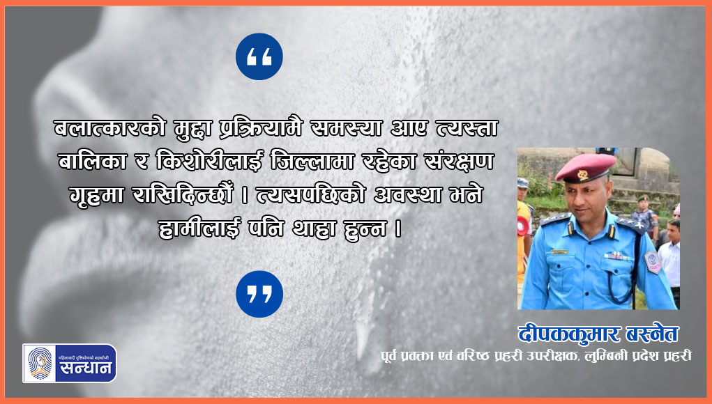 बलात्कारपछि विस्थापित भएका बालिका र किशोरीको सङ्ख्या कति छ भन्ने आँकडा प्रहरीसँग पनि नरहेको बुझिएको छ । लुम्बिनी प्रदेश प्रहरी कार्यालयका अनुसार, आर्थिक वर्ष २०७४/७५ देखि आर्थिक वर्ष २०७९/८० को चैत मसान्तसम्मको अवधिमा कुल दुई हजार ८७५ बलात्कारका उजुरी दर्ता भएका छन् । त्यसमध्ये १० देखि १८ वर्षसम्मका किशोरीहरूसँग सम्बन्धित उजुरी मात्रै दुई हजार ८९ वटा रहेका छन् । लुम्बिनी प्रदेश प्रहरीका पूर्व प्रवक्ता एवं वरिष्ठ प्रहरी उपरीक्षक दीपककुमार बस्नेतको विश्लेषणमा घरपरिवार वा आफन्तबाट बलात्कारमा परेका अधिकांश पीडित बालिका, किशोरी र युवतीहरू विस्थापनको खतरामा पर्ने गरेका छन् । उहाँ भन्नुहुन्छ, “मुद्दा प्रक्रियामै समस्या आए त्यस्ता बालिका र किशोरीलाई जिल्लामा रहेका संरक्षण गृहमा राखिदिन्छौँ । त्यसपछिको अवस्था भने हामीलाई पनि थाहा हुन्न ।”