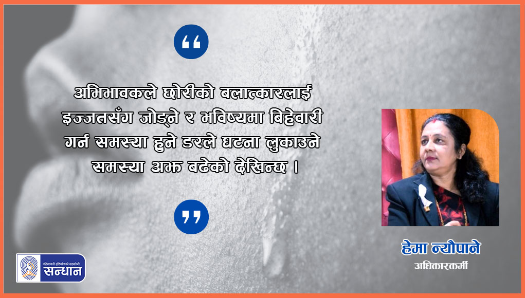 छोरीको न्यायका लागि प्रहरीमा उजुरी दिने अभिभावकहरू त बढेका छन् तर धेरैले न्याय पाउनसकेका छैनन् । न त पीडित बालिकाहरू घरपरिवार र समाजमा स्थापित हुन नै सकेका छन् ।