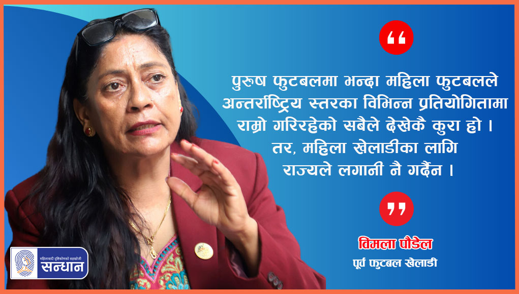 पुरुष फुटबलमा भन्दा महिला फुटबलले अन्तर्राष्ट्रिय स्तरका विभिन्न प्रतियोगितामा राम्रो गरिरहेको सबैले देखेकै कुरा हो । तर, महिला खेलाडीका लागि राज्यले लगानी नै गर्दैन ।