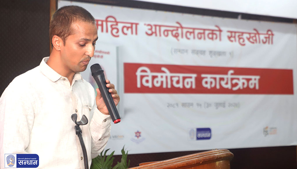 कार्यक्रममा द स्टोरी किचेनका सह–संस्थापक तथा कोषाध्यक्ष राजन पराजुलीले ‘सन्धान फेलोसिप’ मार्फत अनुसन्धानकर्मी, विद्यावारिधि गरिरहेका ‘स्कलर’ र पत्रकार महिलाहरूले लेखेका आलेखको प्रस्तुतिमा प्राज्ञिक र पत्रकारिता दुवै क्षेत्रलाई संयोजन गर्ने प्रयास गरिएको बताउनुभयो । पुस्तकमा राजनीतिक, सामाजिक र व्यक्तिगत सबै खालका अनुभवसँगै महिला आन्दोलनभित्रका पनि विविध आन्दोलनमा महिलाहरूको सहभागिता र योगदानसँगै जीवनभोगाइका ऐतिहासिक तथ्यहरूसमेत रहेको बताउँदै पुस्तक पढेर सुझाव दिन पनि आग्रह गर्नुभयो ।