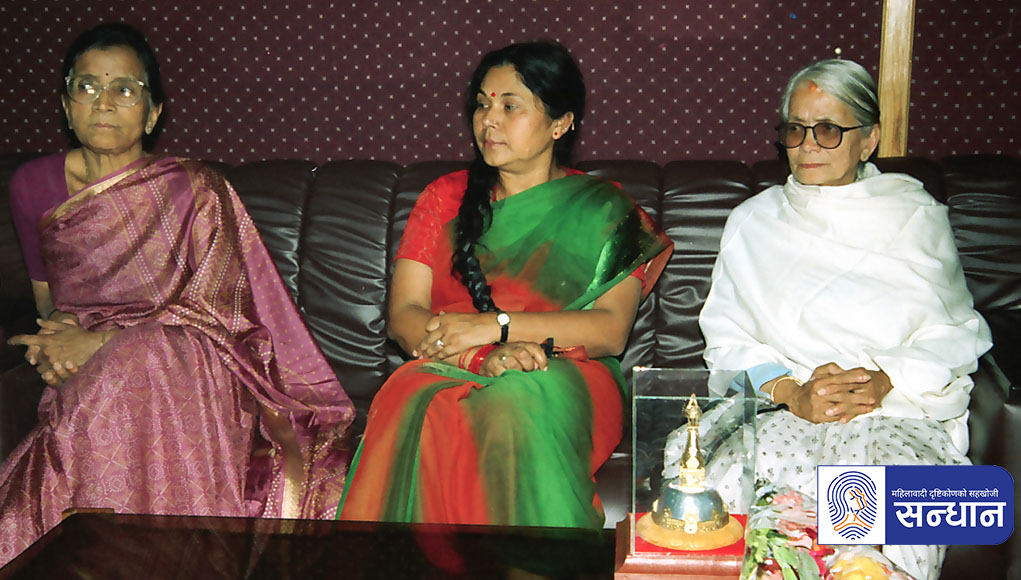 यो ऐतिहासिक फोटो हो । नेपालको पहिलो सम्पादक महिलाका रूपमा उहाँलाई हामीले सम्मान गरेका थियौँ । म त्यो बेला नेशनल युनियन अफ जर्नालिस्ट (एनयुजे) को केन्द्रीय सदस्य र एनयुजेकै महिला विभाग प्रमुख थिएँ । विभागकै पहलमा विश्व प्रेस स्वतन्त्रता दिवसको अवसरमा पुराना व्यक्तिहरूलाई सम्झिनुपर्छ भनेर उहाँलाई सम्मान गरिएको हो । सम्मानका लागि उहाँलाई लिन म र यशोदा तिम्सिना उहाँकै घर गोंगबु गएका थियौँ ।