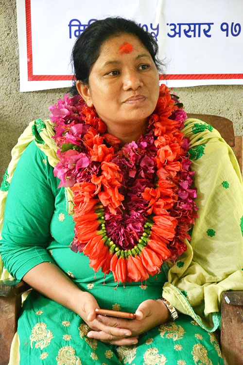 अर्को पनि के देखेँ भने सामान्य जनताले हौसला दिने तर पढेलेखेकाहरूबाटै निरुत्साहित गर्ने काम भयो । जे होस्, चुनाव लडियो र जितियो पनि । चार जना पुरुषसँग प्रतिस्पर्धा थियो । पुरुषहरूसँग प्रतिस्पर्धा छ, महिलालाई हेर्ने दृष्टिकोण समाजको त्यस्तै हो भनेर डर पनि थियो । त्यही पनि झिनो मतले जितियो । २८१ मतले जितेर २०७४ जेठ ६ गते शपथग्रहण गरेको हो ।