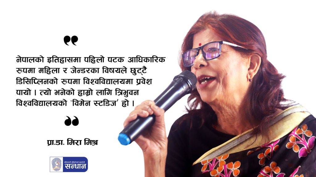 ‘सन्धान’ ले तीनै जना प्रमुख वक्ताले दिनुभएको मौखिक प्रस्तुतिको भिडियो रेकर्ड गरी त्यसैका आधारमा सहकार्यात्मक गृहकार्य गर्दै लिखित पाठ तयार गरेको हो । आजको शृङ्खलामा प्रस्तुत छ, प्रा.डा. मिरा मिश्रको प्रस्तुतिको भिडियोका साथमा सहकार्यात्मक लिखित पाठ :
