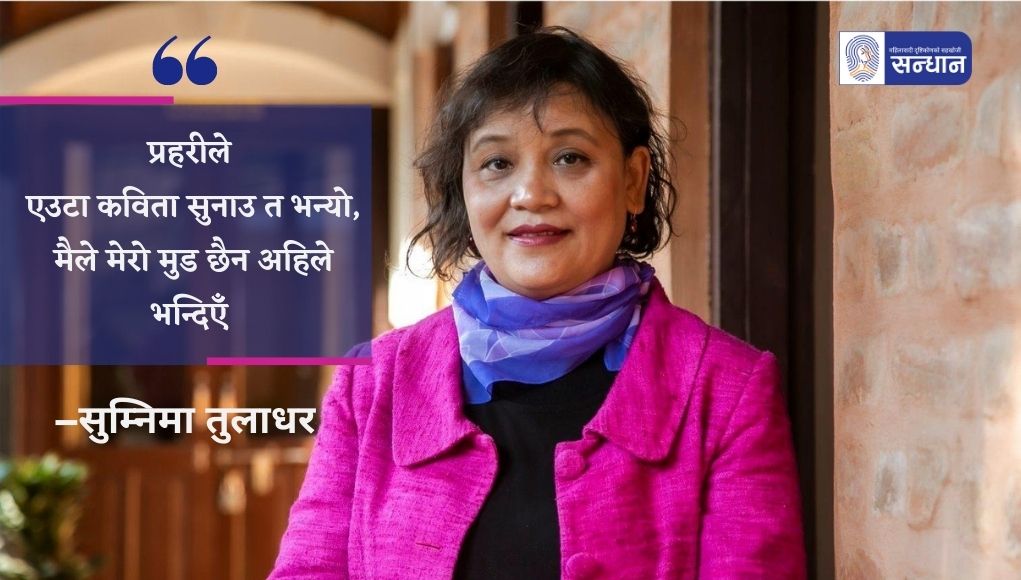 जनआन्दोलन–२०४६ सम्पन्न भएको ३२ वर्ष पुगेको छ । सो आन्दोलनलाई महिलाको दृष्टिकोणबाट स्मरण गर्ने उद्देश्यका साथ ‘सन्धान’ ले सुरु गरेको शृङ्खला जारी नै छ । यसै क्रममा आज प्रस्तुत छ, ‘सन्धान’ का तर्फबाट लक्ष्मी बस्नेतले गरेको कुराकानीमा आधारित सुम्निमा तुलाधरको स्मरण :