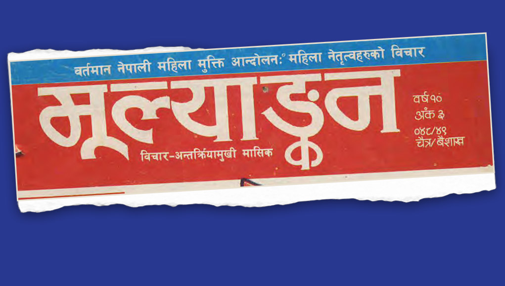 यो सामग्री वि.सं.२०४८/४९ चैत्र/बैशाखमा मूल्याङ्कन मासिकको वर्ष १०, अंक ३ मा प्रकाशित महिलामुक्ति आन्दोलन किन ? शिर्षकको लेखबाट साभार गरिएको हो । अस्मिता प्रकाशनका तत्कालिन सम्पादक