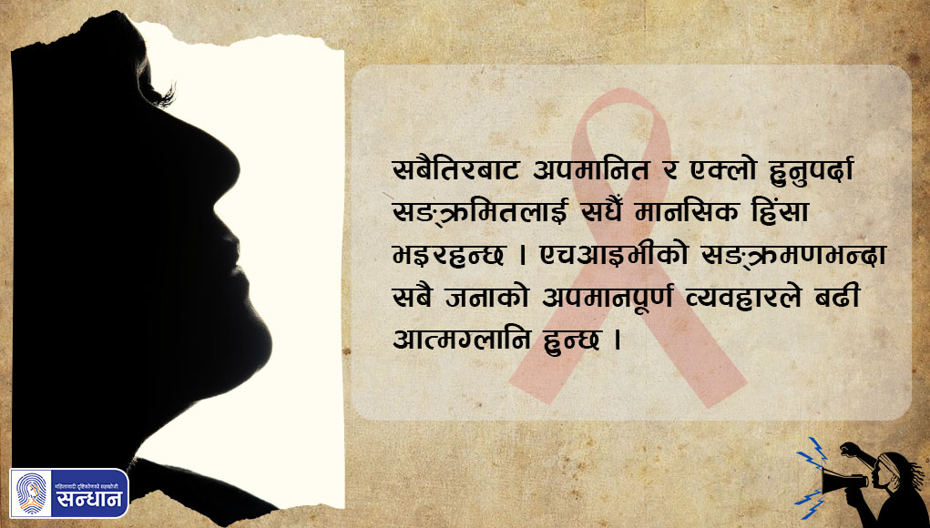 सन्दर्भ : लैङ्गिक हिंसाविरुद्धको सोह्रदिने अभियान मकवानपुरकी एक महिला २९ वर्षको उमेरमा एचआइभी सङ्क्रमित हुनुभयो । सङ्क्रमणका कारक उहाँका श्रीमान् हुनुहुँदो रहेछ । आफू सङ्क्रमित