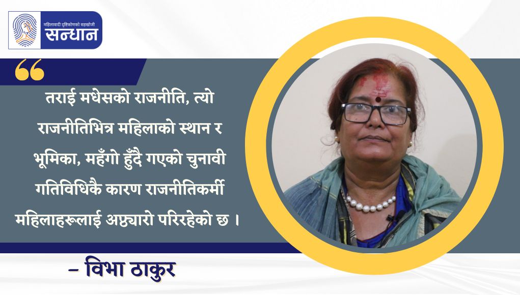 तराई मधेसमा विशेषतः महिलाकै हक, अधिकार र पहिचानका मुद्दालाई लिएर महिलाले अलग्गै आन्दोलन गरेनन् । देशमा, खासगरी मधेसमा २०४६, २०६२/६३ तथा २०७२ सालमा भएका आन्दोलनमा