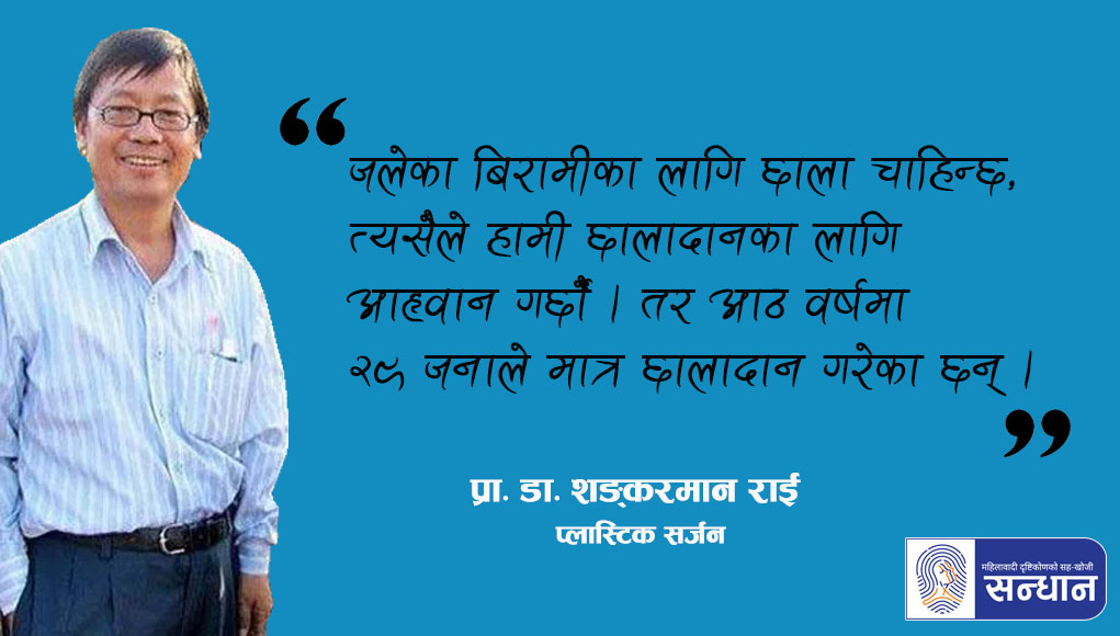 जलन घटना : ‘भान्सामै जल्छन् धेरै महिला’ – प्रा.डा. शङ्करमान राई (अन्तरवार्ता) नेपालमा बर्सेनी ५० देखि ६० हजार जलनका घटना हुनेको गरेको तथ्याङ्कले देखाएको छ । ती घटनामा आधाभन्दा बढी महिला र बालबालिका पर्ने गरेका छन् । December 21, 2022 No Comments